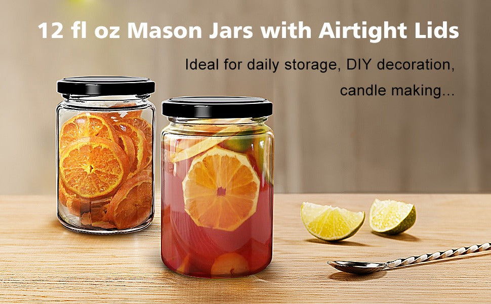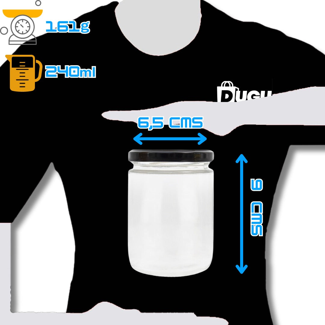 Pack De 6 Frascos De Vidrio De 240ml Con Tapa Twist Off Negra